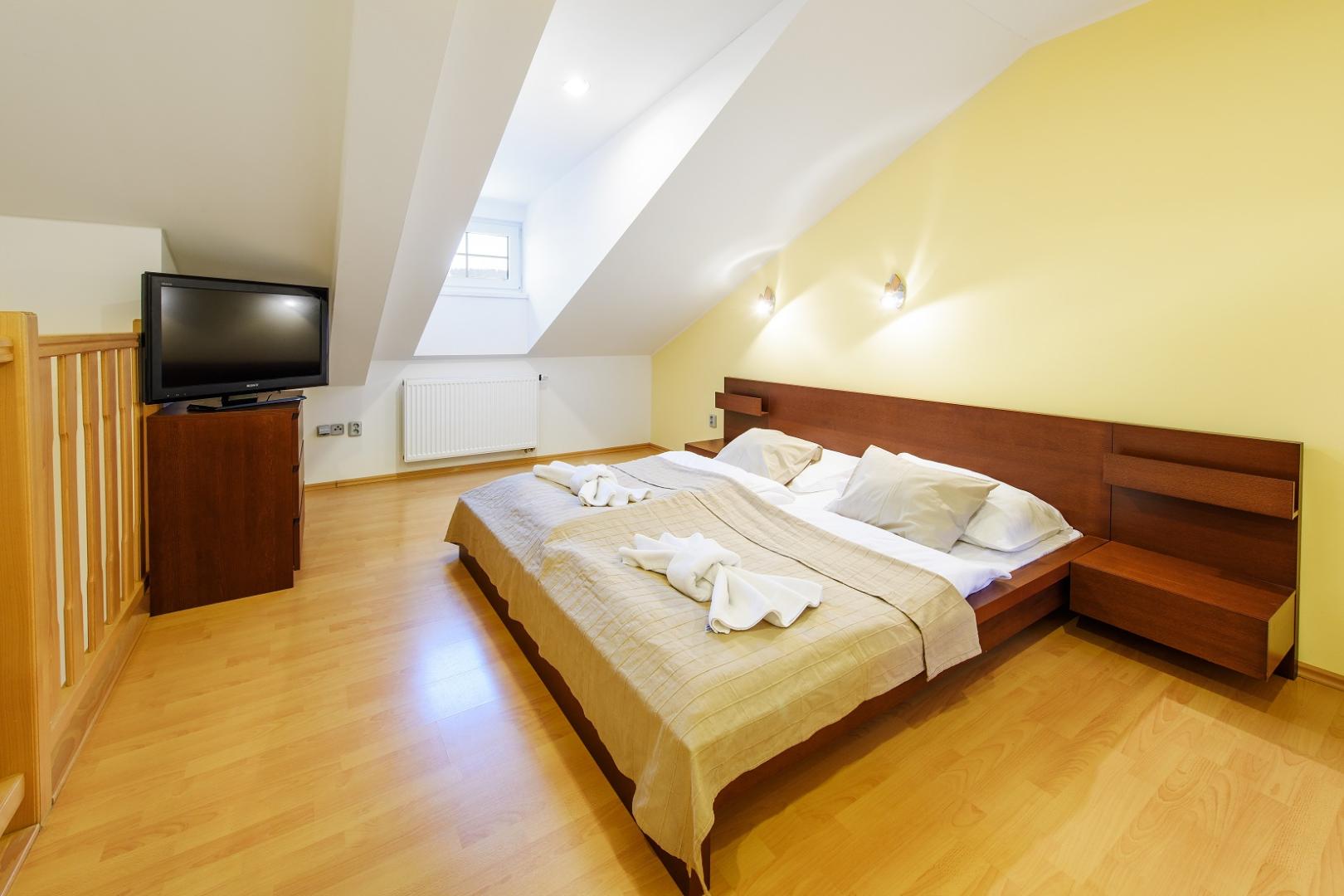 - Kvalitní ubytování s manželskou postelí a vlastním sociálním zázemím